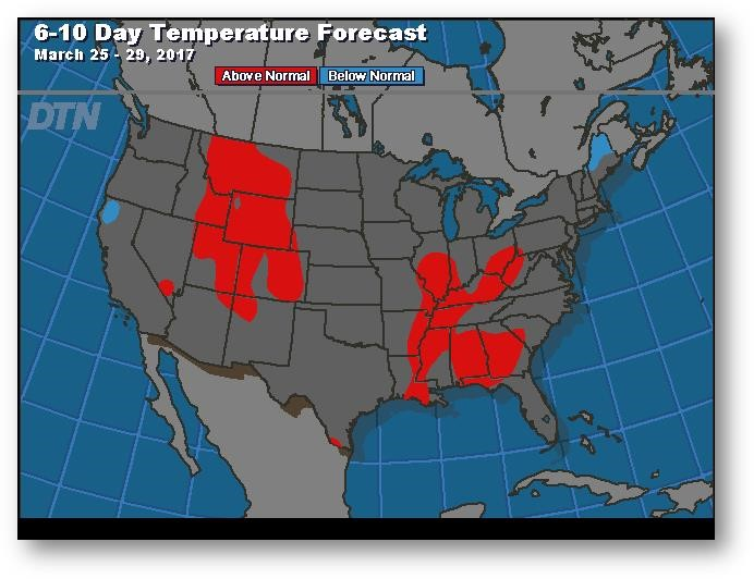 Prévisions de températures pour les 6 à 10 prochains jours