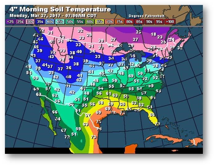 Température du sol en matinée à une profondeur de 4 pouces (degrés Farenheit)