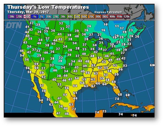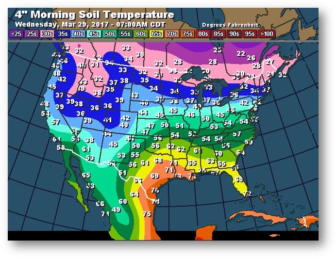 Température du sol en matinée à une profondeur de 4 pouces (degrés Farenheit)
