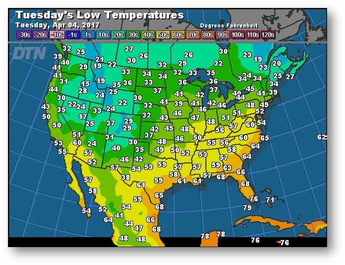 Prévisions des températures les plus basses (degrés Farenheit)