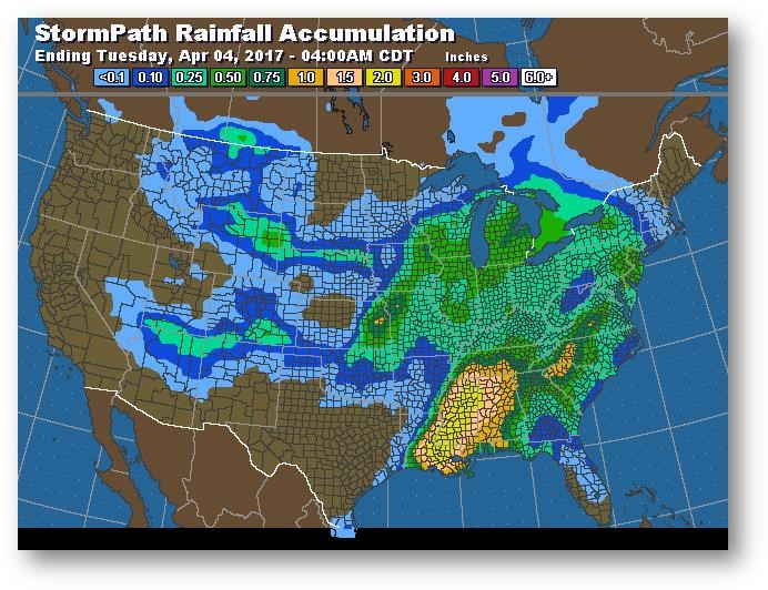 Trajectoire de tempête – Accumulation de précipitations (pouces)