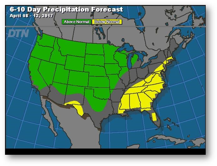 Prévisions de précipitation pour les 6 à 10 prochains jours