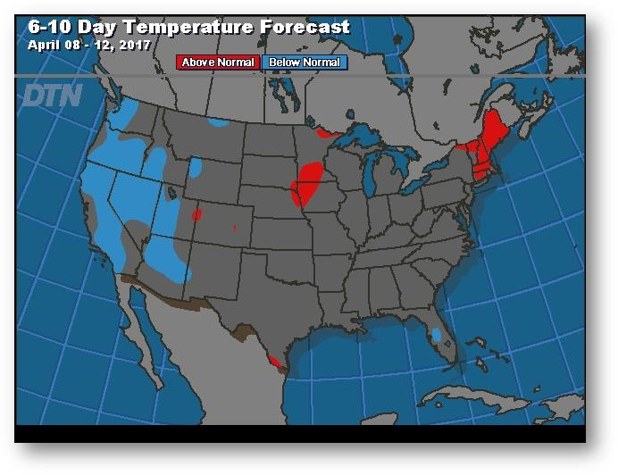 Prévisions de températures pour les 6 à 10 prochains jours