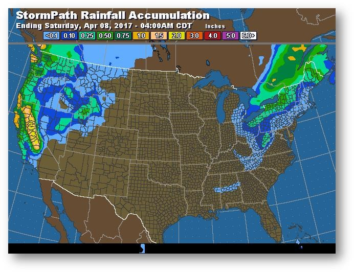 Trajectoire de tempête – Accumulation de précipitations (pouces)
