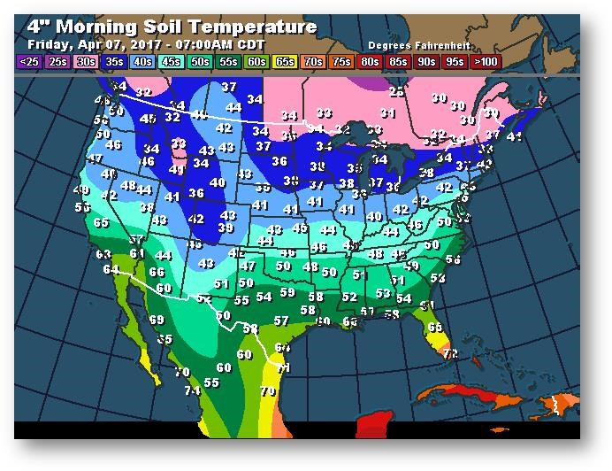 Température du sol en matinée à une profondeur de 4 pouces (degrés Farenheit)