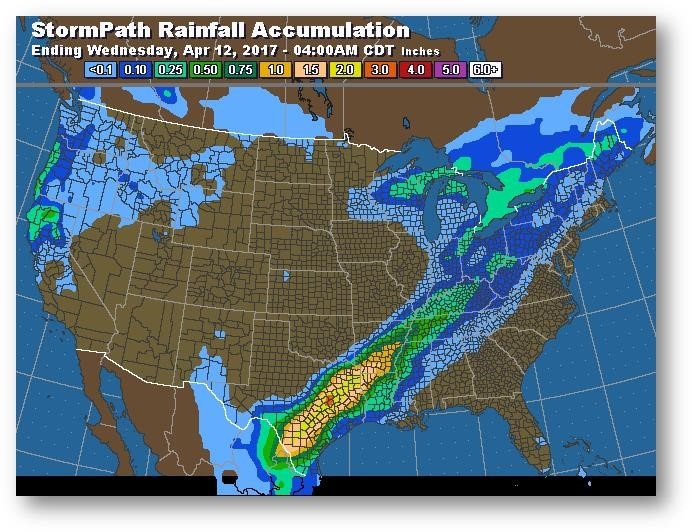 Trajectoire de tempête – Accumulation de précipitations (pouces)