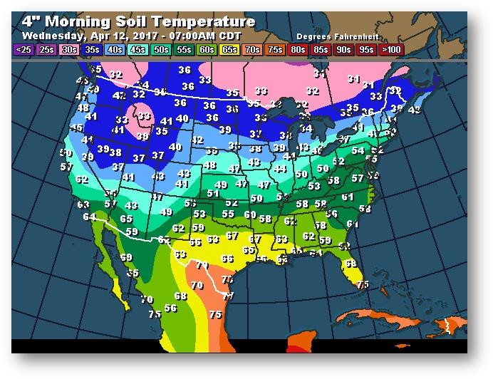 Température du sol en matinée à une profondeur de 4 pouces (degrés Farenheit)