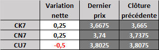 Contrat à terme du maïs à 6 h HNC mercredi : en légère hausse