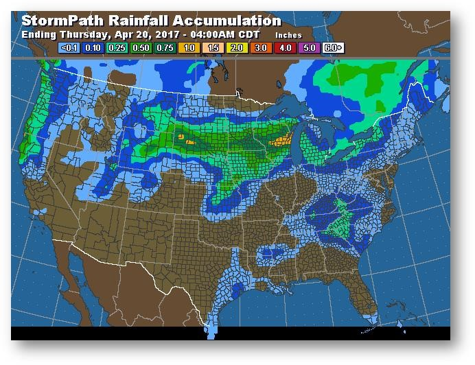Trajectoire de tempête – Accumulation de précipitations (pouces)