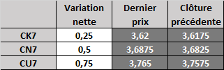 Évolution du prix calculé en fonction du rapport 201 du CME : baisse prévue de 0,43$/100lb
