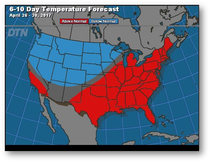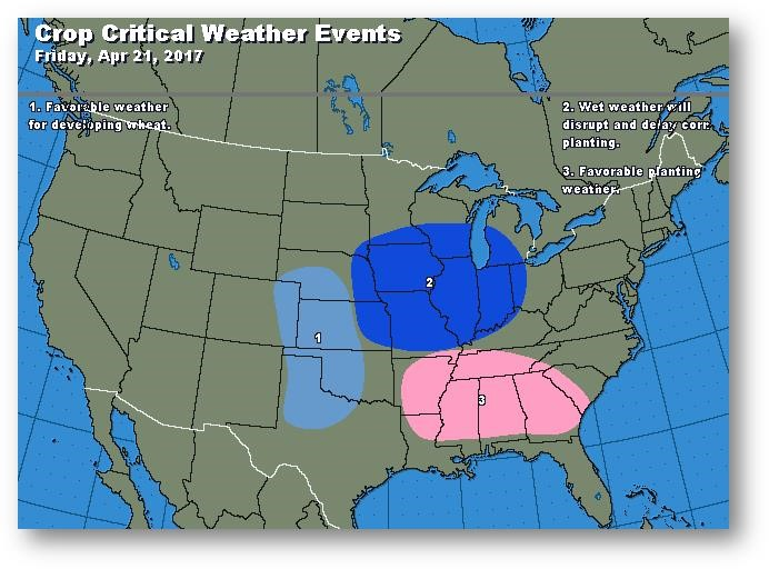 Le contrat à terme de mai se tient au neutre. Le sud des Plaines reçoit des précipitations et les orages dans la Texas Panhandle devraient se déplacer vers le sud du Midwest plus tard aujourd'hui. Cette semaine, les prix ont eu la vie dure. Les conditions météo favorables à la deuxième culture au Brésil continuent d'exercer de la pression et compensent les inquiétudes relatives au rythme lent des semis printaniers aux États-Unis. Le nord du Midwest devrait être plus sec au cours des prochains jours, mais de la pluie est attendue plus tard la semaine prochaine. L'ensemencement de maïs reste un défi en 2017, mais le prix du contrat à terme de mai continue de subir de la pression et demeure jusqu'à maintenant au-dessus du niveau de support à 3,5425$.