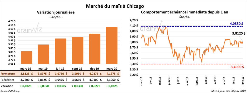 La plupart des contrats de maïs à Chicago ont terminé la journée en hausse de 2 à 4 cents.