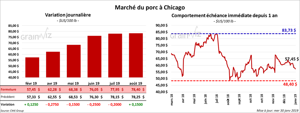 À la fermeture du marché, les contrats de porc à Chicago se situaient quelque part entre une baisse de 32,5 cents et une hausse de 52,5 cents.