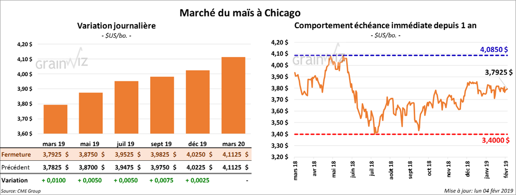 Présenté aujourd’hui avec un retard, le rapport de janvier sur la trituration de grain a signalé qu’en novembre dernier, 454,533 millions de boisseaux de maïs avaient été triturés pour la production d’éthanol US. C’était une baisse de 1,2 % par rapport à octobre et de 4,44 % comparativement à la même période en 2017. Le rapport concernant le mois de décembre dernier sera rendu public le 22 février prochain.