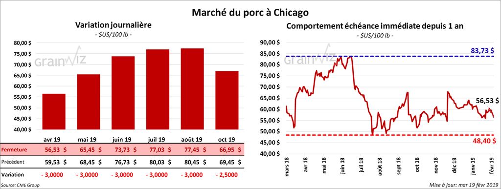 Les contrats de porc à Chicago ont enregistré de grosses pertes jusqu’en août 19. Les contrats différés étaient en nette baisse.