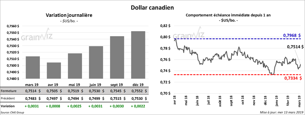La majorité des contrats de soya à Chicago ont terminé la journée avec des gains de 3 à 4 ¼ cents. Les contrats de tourteau de soya aux échéances les plus rapprochées ont également clôturé en hausse de 1,90 $/tonne. Par contre, l’huile a reculé de 9 points.