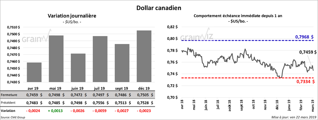 La plupart des contrats de soya à Chicago ont fini la session en baisse de 6 à 7 ¼ cents. Pour la semaine, le contrat mai 19 a reculé de 0,6 %. Les contrats de tourteau ont également clôturé dans le rouge de 30 cents/tonne. L’huile a perdu 44 points. Pour la semaine, les contrats d’huile de soya aux échéances les plus rapprochées ont baissé de 2,62 %.