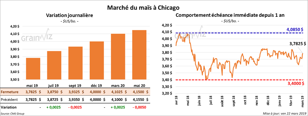 La majorité des contrats de maïs à Chicago ont clôturé avec des gains de 1 à 2 cents. Pour la semaine, le contrat mai 19 a pris 1,34 %.