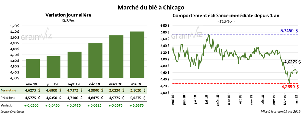 Dans son rapport de vendredi dernier, le USDA a montré que pour tous les types de blé US, les intentions d’ensemencements étaient plus faibles que prévus à 45,75 millions d’acres. Toutefois, les marchés s’étaient davantage concentrés sur les inventaires en date du 1er mars dernier. Aujourd’hui, ils se sont repris en mettant l’accent sur les ensemencements probables.