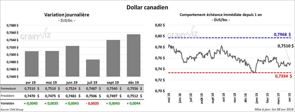 Demain, le USDA devrait rendre public son rapport mensuel d’offre et de demande (WASDE). Le marché s’attend à ce que la production de maïs argentin soit à la hausse de 46,44 millions de tonnes et celle du Brésil à 94,83 millions de tonnes. Mondialement, le marché prévoit des stocks de fin d’année de 311,16 millions de tonnes, une hausse comparativement aux 308,53 millions de tonnes de mars dernier. Cette augmentation serait due à la hausse des inventaires de maïs US.