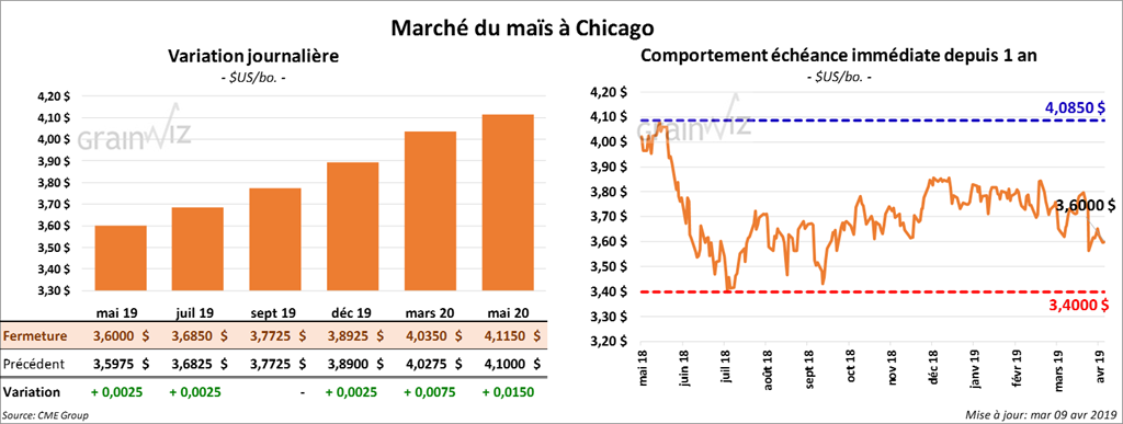 Les contrats de maïs US aux échéances les plus rapprochées ont terminé la journée inchangés. Les contrats différés ont clôturé en hausse d’une cent.