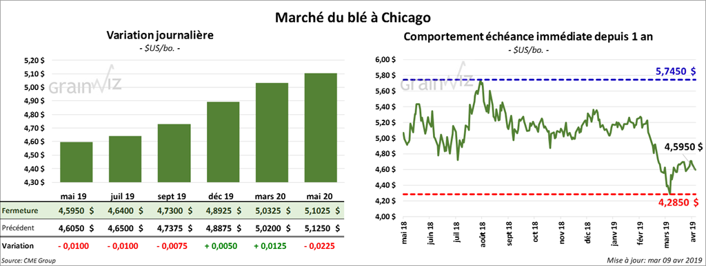 La plupart des contrats de blé US ont fini la session au neutre à baissier de 5 ¾ cents.
