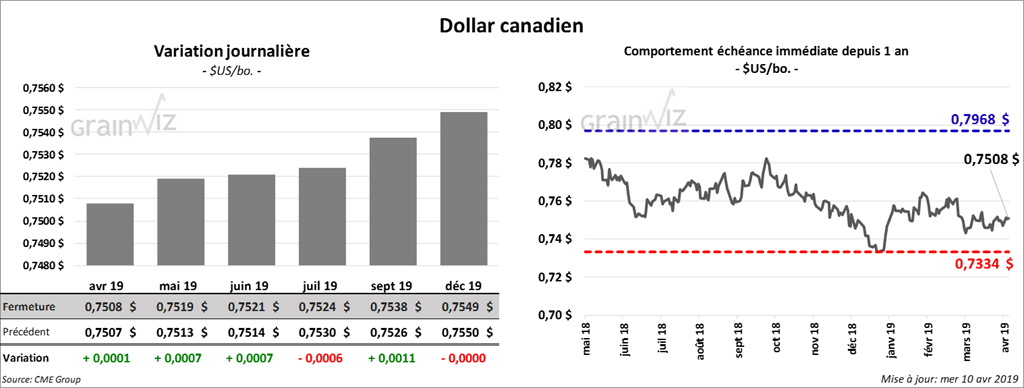 AgRural estime actuellement que la récolte de soya brésilien est de 114,6 millions de tonnes, soit une augmentation de 1,7 % comparativement à mars dernier. En Argentine, le Rosario Grain Exchange estime que la production de maïs argentin est en hausse de 2 millions de tonnes à 55 millions de tonnes. Le USDA évalue la récolte de maïs argentin à 55 millions de tonnes.