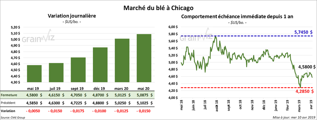 Les contrats de maïs à Chicago ont terminé la journée d’une fraction à 2 ¼ cents à la hausse.