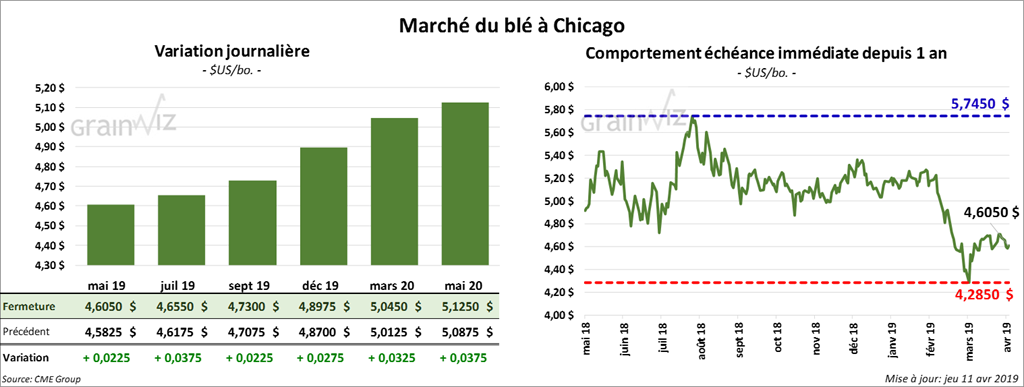 Les contrats de blé US ont terminé la journée en hausse de 2 à 5 cents.