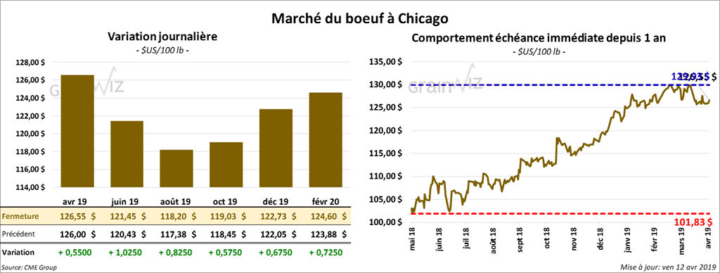 La plupart des contrats de bœuf à Chicago ont terminé la semaine à la hausse de 55 cents à 1,025 $. Les contrats de veau US aux échéances les plus rapprochées ont fini la journée au neutre à haussier de 1,05 $.