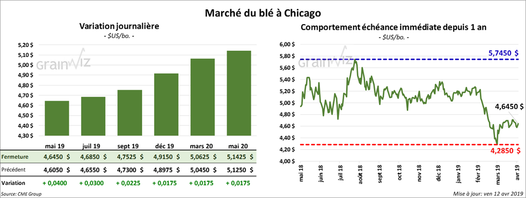 Les contrats de blé d’hiver US ont terminé la session avec des gains de 1 à 4 cents. À Minneapolis, sous la pression des prises de profits après avoir augmenté de 12 cents durant la semaine, les contrats ont reculé de 1 à 2 ½ cents.