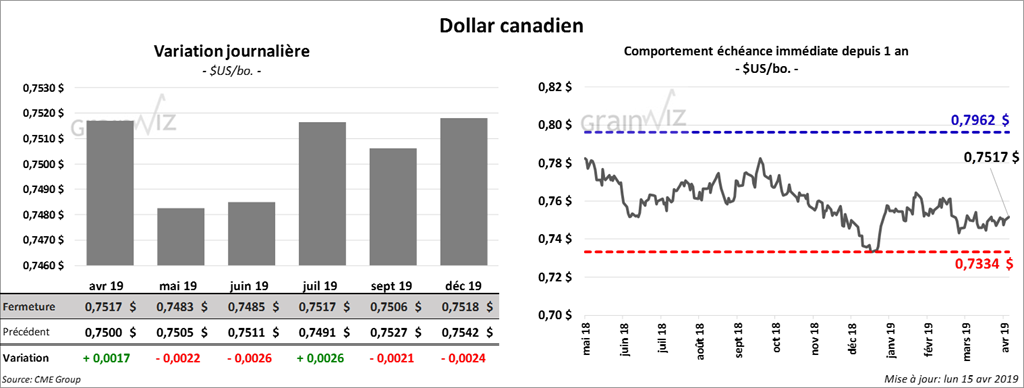 Au cours l’avant-midi, le USDA a mentionné dans son rapport sur les inspections à l’exportation que 511,400 tonnes de blé US avaient été exportées durant la semaine du 11 avril dernier, ce qui correspond à une baisse par rapport à la semaine précédente, mais aussi à une augmentation de 1,28 % comparativement à la même période en 2018.
