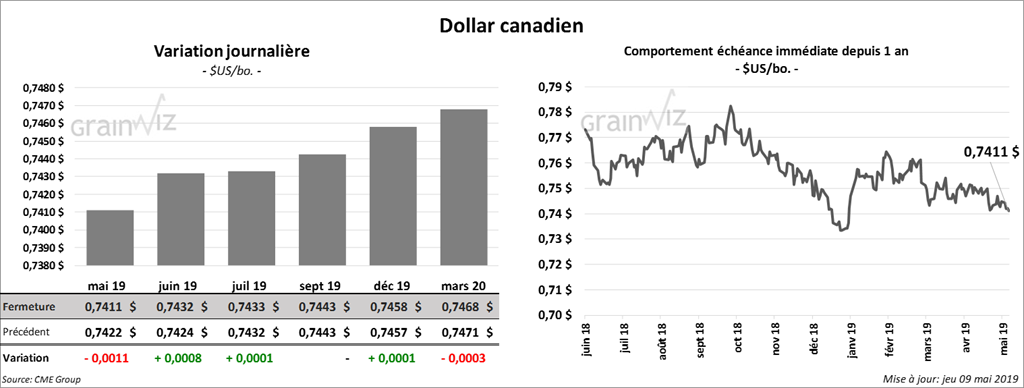 Ce matin, le rapport hebdomadaire sur les ventes à l’exportation de la semaine du 2 mai dernier a indiqué une nette réduction des ventes de 149,123 tonnes de soya US 2018/2019. Les analystes s’attendaient à un résultat entre 300,000 et 650,000 tonnes. Les ventes de la récolte de 2019/2020 ont été de 259,592 tonnes.