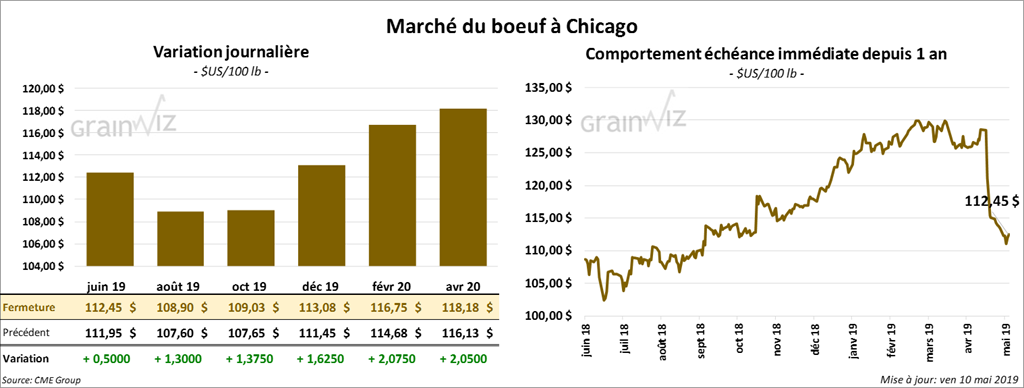 Les contrats de porc US aux échéances les plus rapprochées ont fini la session au neutre à baissier de 60 cents. Les contrats différés ont clôturé en hausse. Pour la semaine, le contrat juin 19 a perdu 3,32 %.