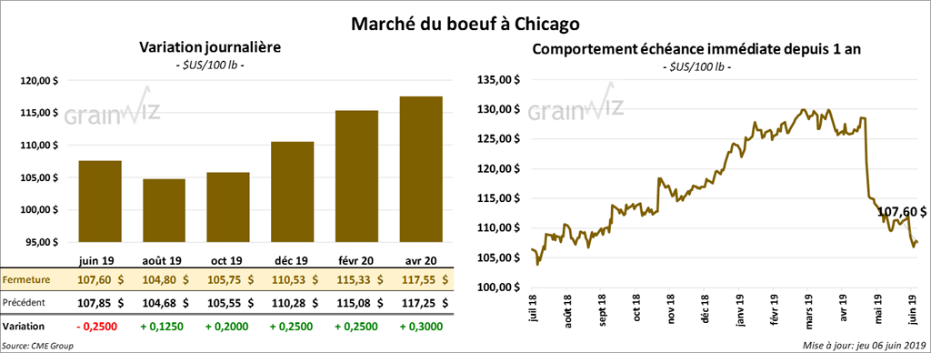 La plupart des contrats de bœuf US ont fini la session en hausse de 12,5 à 30 cents. Par contre, le contrat juin 19 a clôturé en baisse d’un quart de point. Les contrats de veau ont clôturé sur une note partagée. La majorité d’entre eux se situaient quelque part entre un recul de 17,5 cents et une progression de 7,5 cents.