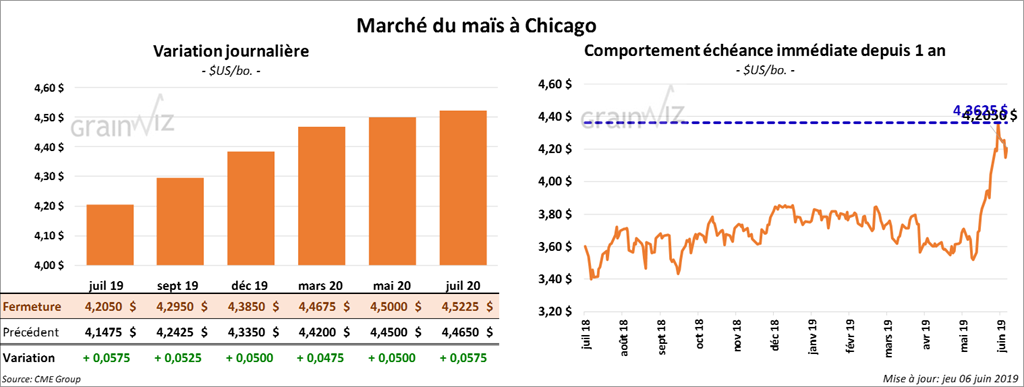 Ce matin, le USDA a annoncé que durant la semaine du 30 mai dernier, les ventes à l’exportation de maïs US ont eu une réduction nette de 8,788 tonnes, ce qui était bien en deçà du minimum des anticipations de marché. Les ventes de la nouvelle récolte ont été de seulement 23,458 tonnes.