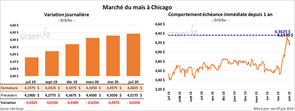 Les contrats de maïs à Chicago ont terminé en baisse de 4 ¼ à 5 ¼ cents.