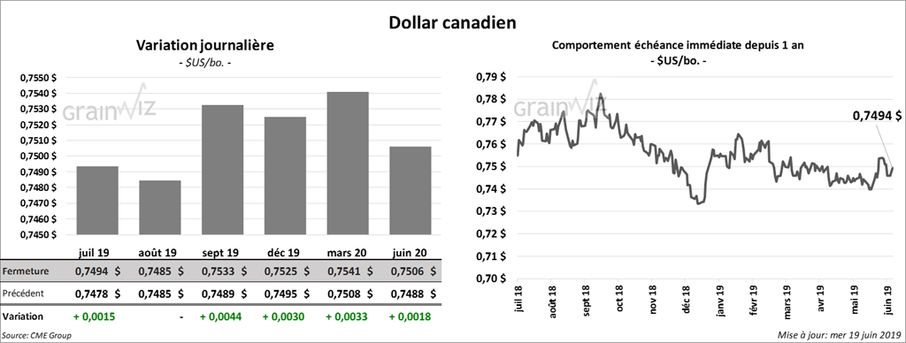 Ce matin, l’EIA a annoncé que la production d’éthanol US a été de 1,081 million de barils par jour durant la semaine du 14 juin dernier. Il s’agit d’une augmentation par rapport à la même période en 2018, mais également d’une baisse de 15,000 bpj comparativement à la semaine précédente. De plus, les inventaires ont baissé de 189,000 barils à 21,613 millions de barils, ce qui est le niveau le plus bas depuis mai 2018.