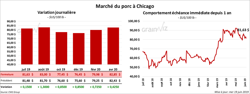 La plupart des contrats de porc à Chicago ont terminé la journée avec des gains de 15 cents à 1,30 $.
