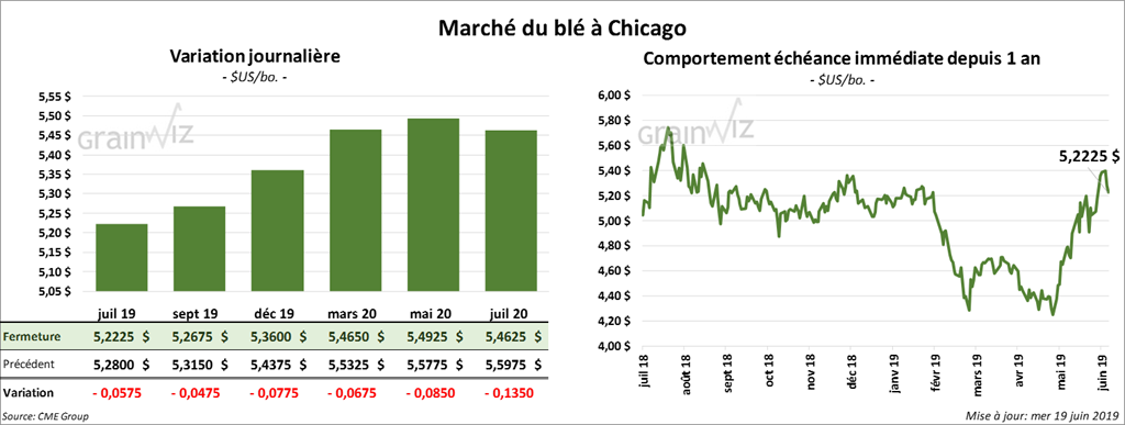 Sous l’effet des prises de profits, la plupart des contrats de blé US ont terminé la session en baisse de 7 à 14 cents.