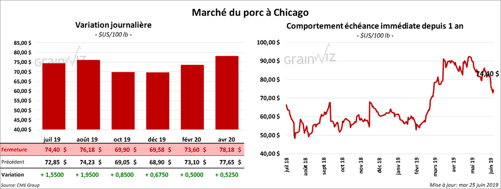 Les contrats de porc à Chicago ont terminé en hausse de 50 cents à 1,95 $.