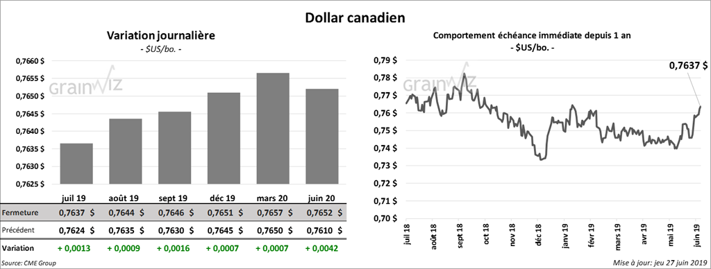 Quelques contrats différés 2020 ont terminé la journée au neutre alors que ceux aux échéances les plus rapprochées ont clôturé en baisse de 3 ¾ cents.