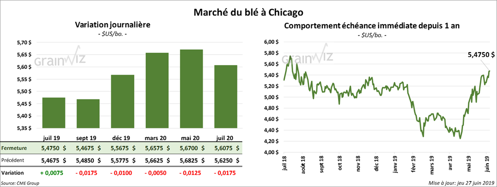 La plupart des contrats de blé ont terminé la session sur une note partagée. À Kansas, les contrats aux échéances les plus rapprochées ont clôturé en baisse d’un centime. À Chicago et à Minneapolis, ils ont fait l’inverse en prenant 3 ¾ cents. Le «spread» Chicago-Kansas est actuellement à 79 ½ cents.