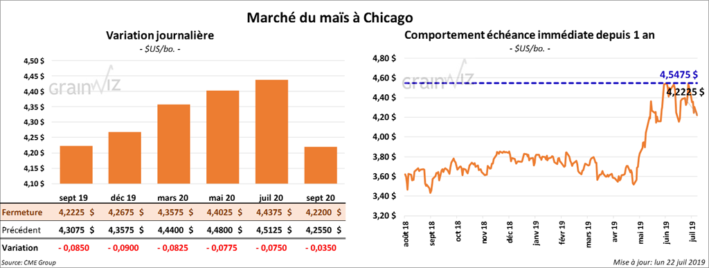 Les températures plus fraîches prévues cette semaine pour le Corn Belt est un aspect négatif qui freine la hausse des prix. Ces températures devraient être utiles puisque le maïs US est actuellement au stade de la pollinisation.