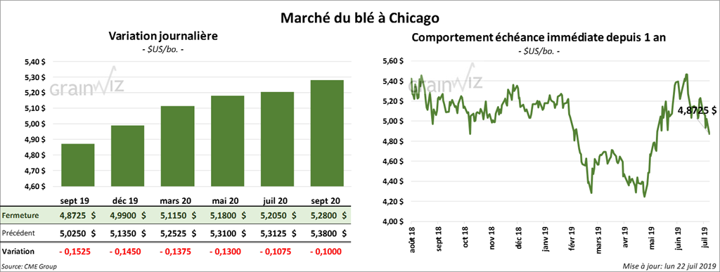 La majorité des contrats de blé US ont terminé la session avec des pertes de 8 à 15 ¼ cents.
