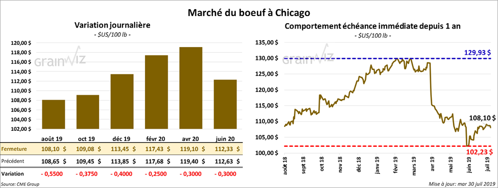 La majorité des contrats de bœuf US aux échéances les plus rapprochées ont terminé la journée en baisse de 35 à 55 cents. De leur côté, les contrats de veau aux échéances les plus rapprochées ont fait l’inverse en prenant 80 cents à 1,30 $. La faiblesse des contrats de maïs US a donné un coup de pouce au secteur.