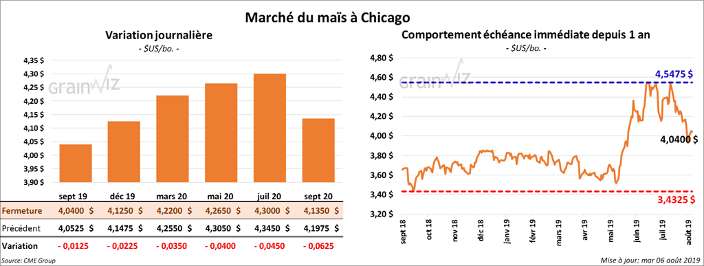 Les contrats de maïs US aux échéances les plus rapprochées ont terminé la session en baisse de 1 ¼ à 4 cents.