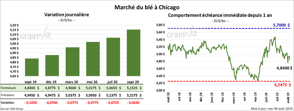 La plupart des contrats de blé US ont fini la session en baisse de 2 ½ à 10 ½ cents. À Minneapolis, la progression des contrats a été plus ferme.