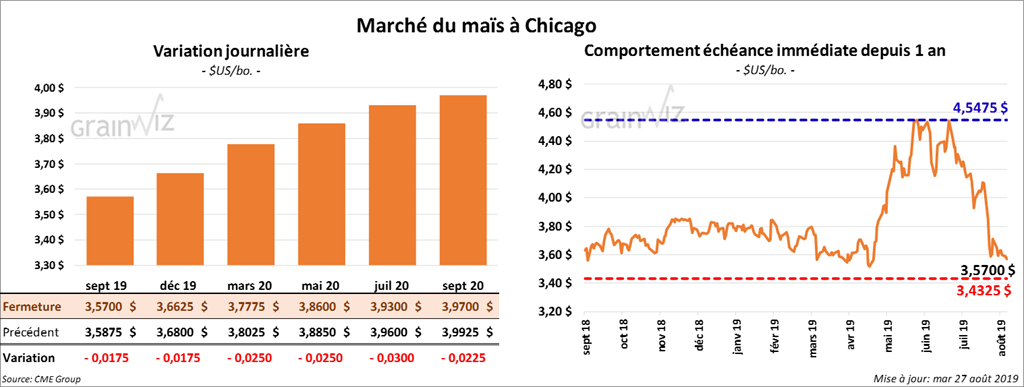 Les contrats de maïs à Chicago ont clôturé en baisse de 1 à 3 cents.