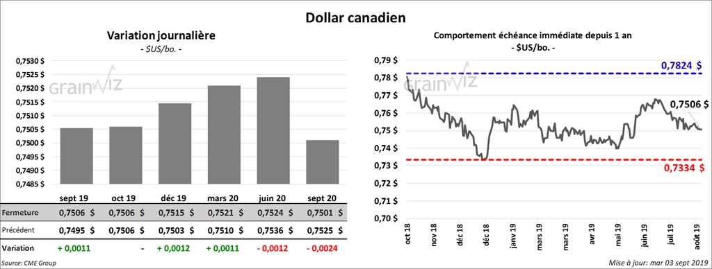 Les conditions de culture de soya US sont demeurées inchangées par rapport à la semaine précédente. Le marché anticipait une amélioration modeste. Cet après-midi, le NASS montrait que dimanche dernier, 86 % des plants de soya US étaient au stade de remplissage des gousses alors que la moyenne des 5 dernières années est de 96 %.